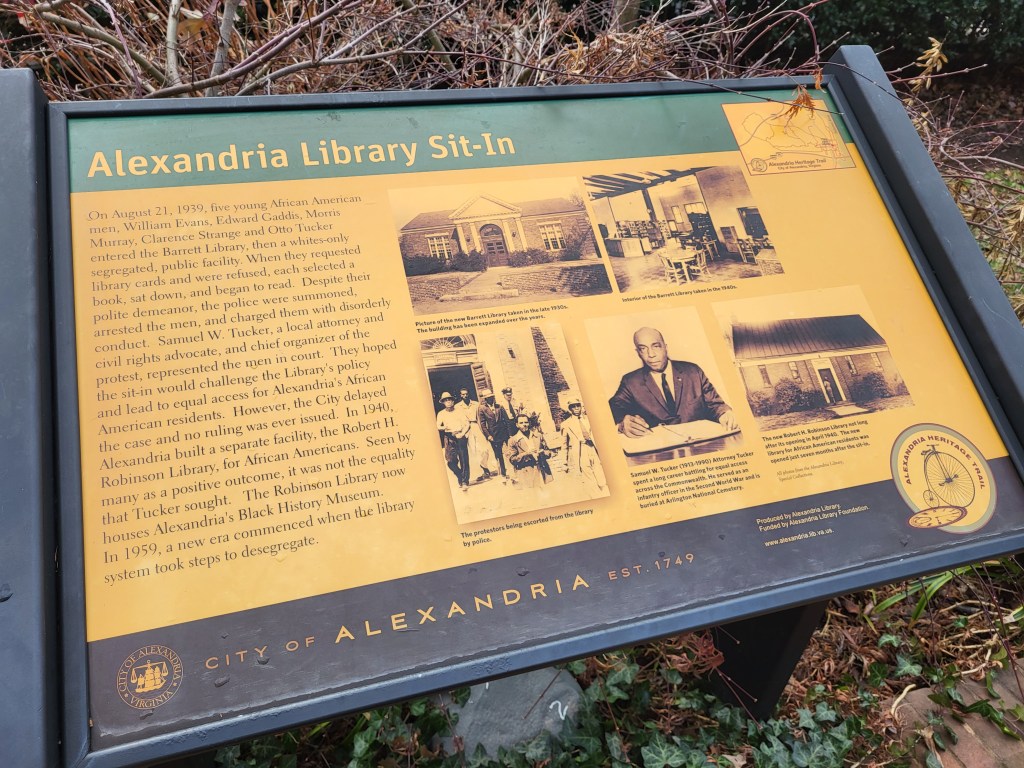 Before stopping by the museum, though, I took care of another one of my resolutions and stopped by the Kate Waller Barrett branch of the Alexandria public library to acquire a library card. Huzzah! This was a fitting stopping point before visiting the museum, because it is the location of one of the most important moments in Alexandria black history: the Alexandria Library Sit-in. the sit-in was organized by attorney Samuel Tucker in 1939, many years before the more famous sit-ins started in Greensboro in 1960. The sit-in resulted in the creation of a segregated “separate but equal” black library a few blocks north. Guess what that library is being used as now… that’s right, the Alexandria Black History Museum. The Kate Waller library had an informative plaque out front explaining the sit-in and its aftermath: