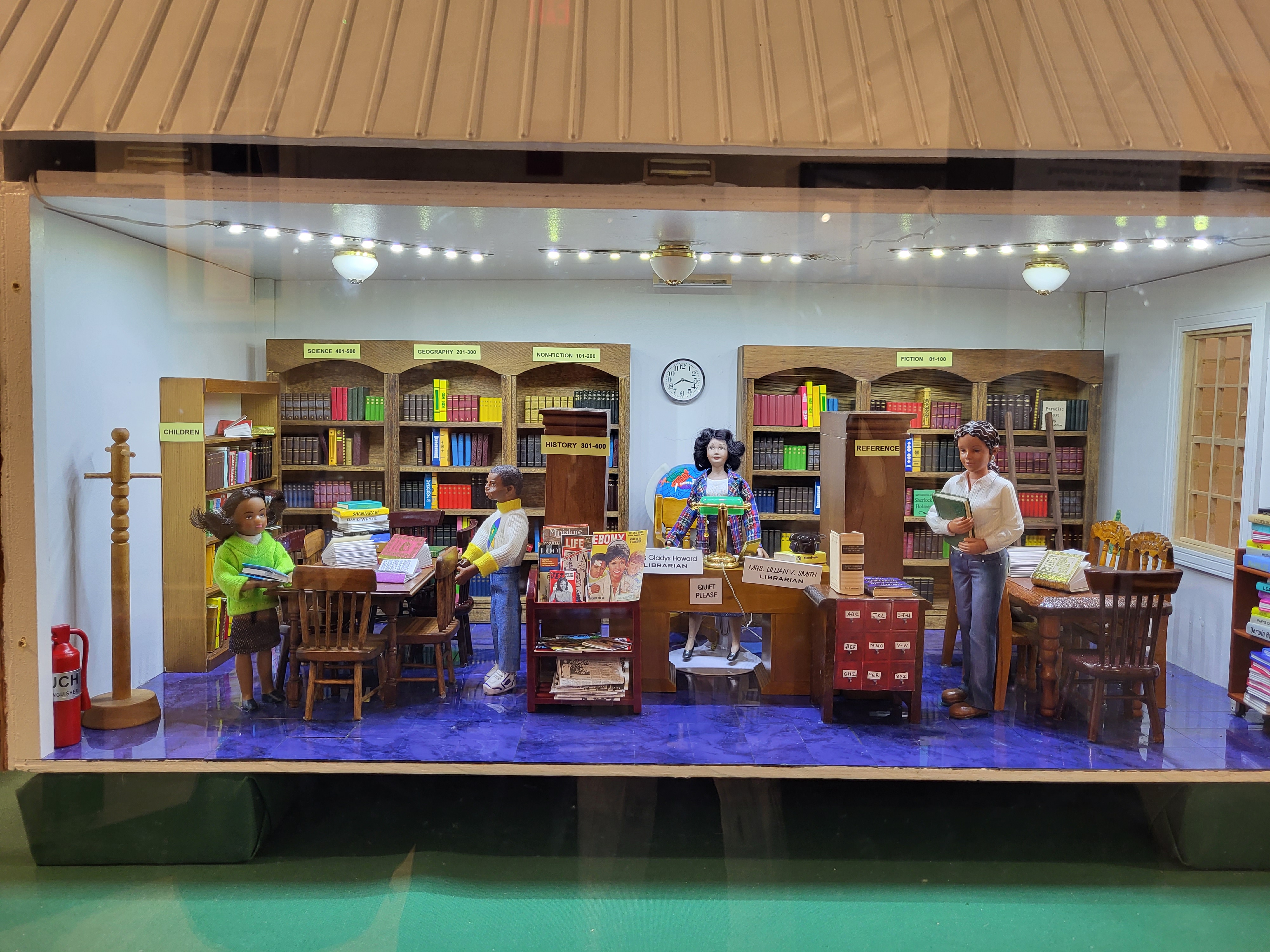The museum is quite small. The main exhibit takes up the original library building, which is a single tiny room. They have a little diorama to illustrate what the interior looked like at that time. Assuming someone put some effort into the accuracy of the display, it’s disheartening to realize how few books had fit into the space (less than my parents have in their house, maybe even less than I have in mine), especially after I’d walked straight over from the white library: