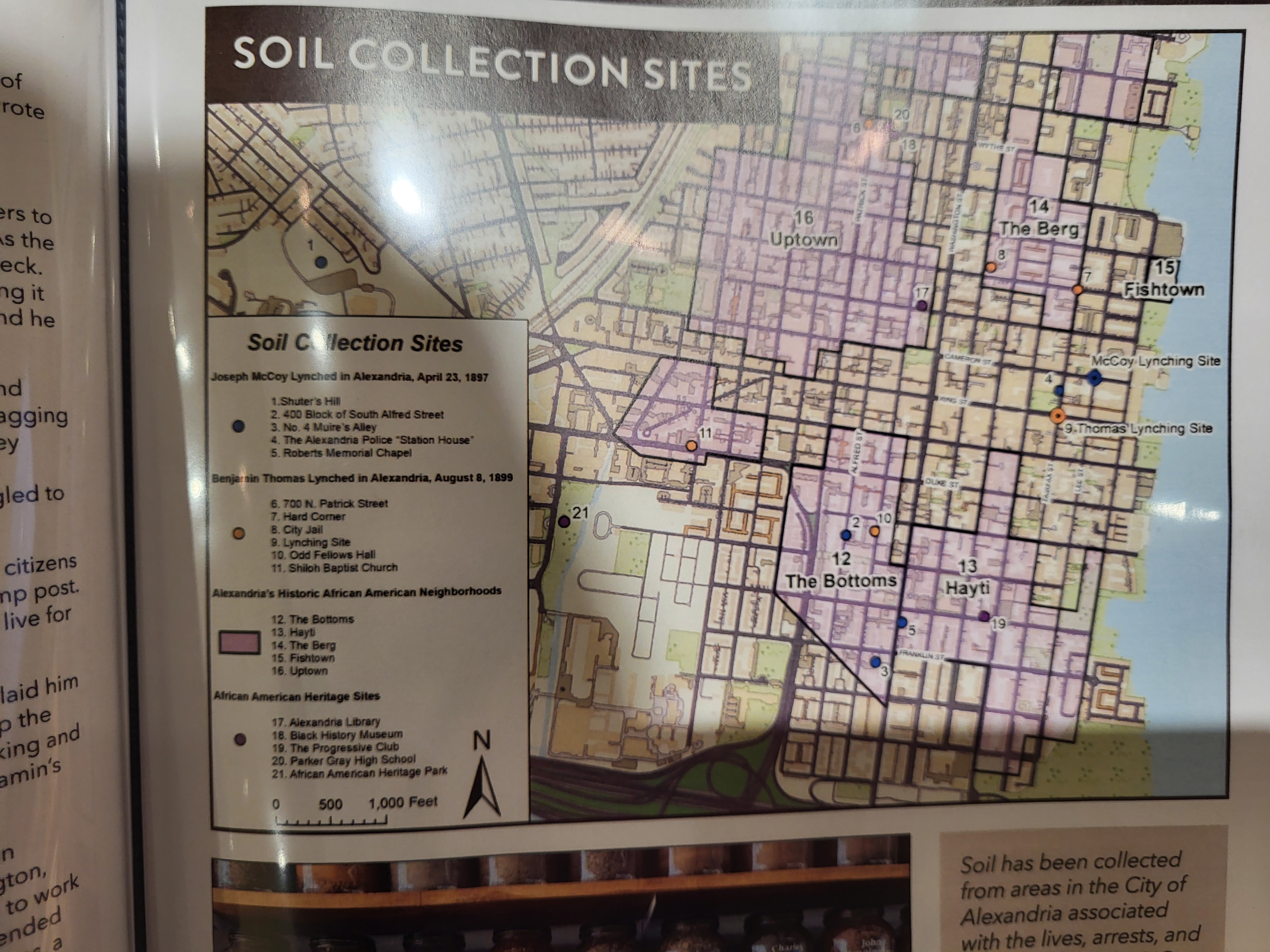 It was only at the very, very end of the entire museum that I finally found something with the detail I’d been hoping for from the entire museum. It was a sample program from the lynching memorial ceremony. That program was jam-packed with soooo much detailed history. For example, a map of locations of historical significance, such as where the historically black neighborhoods were located.