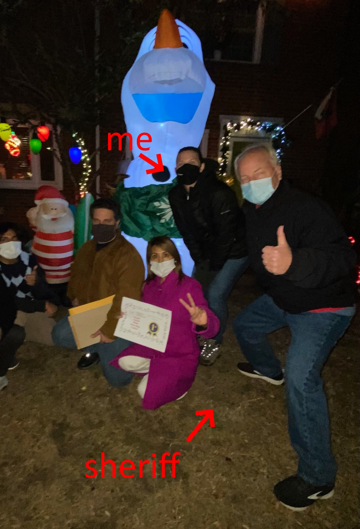 The second half of the museum was a similarly-sized room that contains temporary exhibits. Today there were two exhibits: one about the Black Lives Matters movement in Alexandria, and another one about a ceremony to commemorate Alexandria’s two lynchings. The BLM material was interesting, insofar as I was here for that (I didn’t participate for fear of covid, but I watched the protestors march past my house), so it was kinda neat seeing something I’m familiar with commemorated in a museum. I remember it well enough that I thought, “Wait, it rained that day. I remember cuz I considered offering umbrellas and/or temporary shelter to people.” This display also had much more material than the entirety of the history part of the history museum, including tons of photos, posters and other protest art, and a binder full of official comments from various city officials. There was one from our (now-retired) city sheriff, who I’ve hung out with a couple times in weird situations. Here we are delivering prizes to best-decorated houses together: