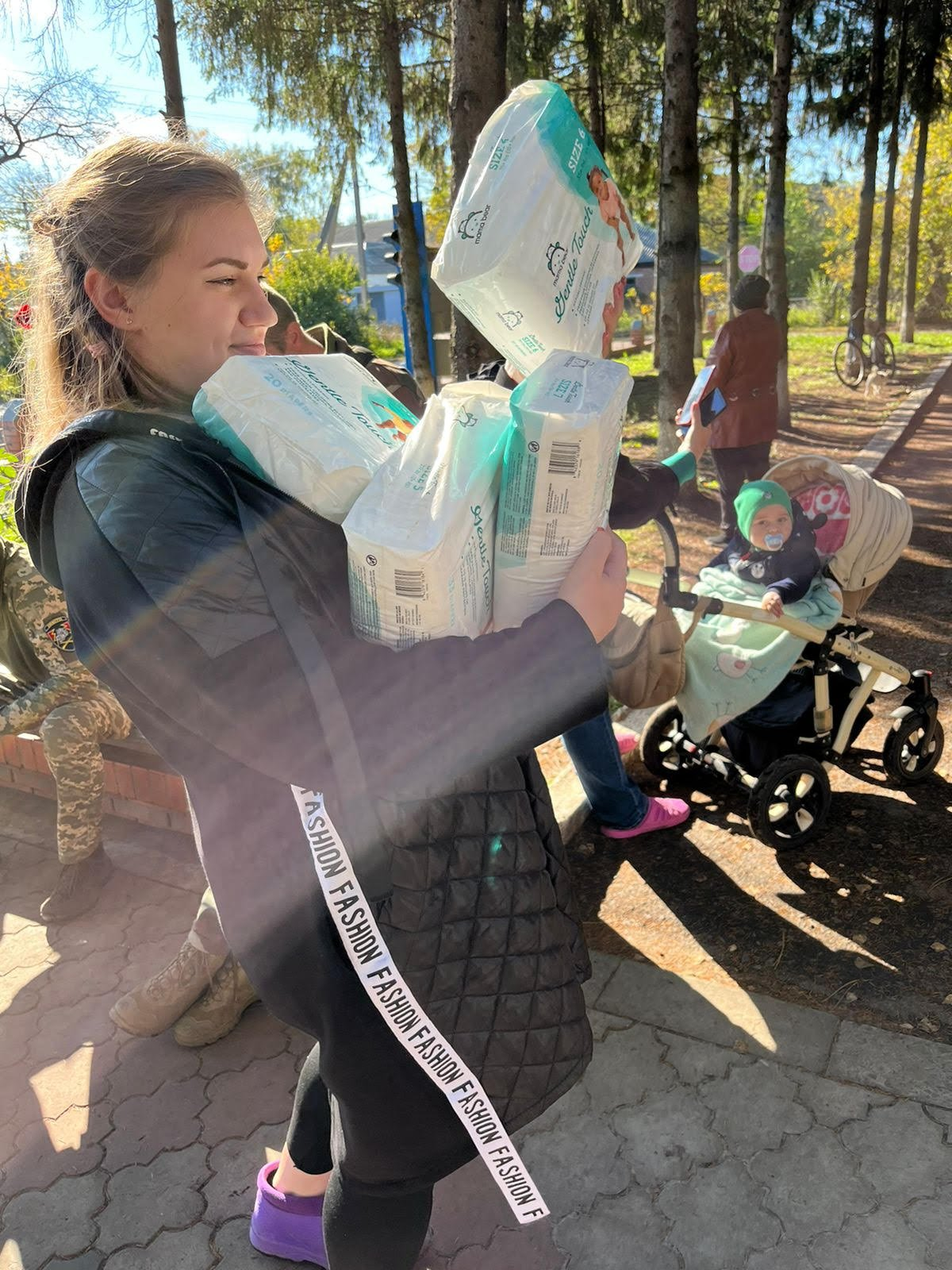 Diaper Donation Update: To my complete and happy surprise, today I received confirmation that our donated items made it to Borova, a town in the Kharkiv Oblast that was liberated on October 3rd. To my even greater surprise, I received the below photos of Ukranian families receiving their items.