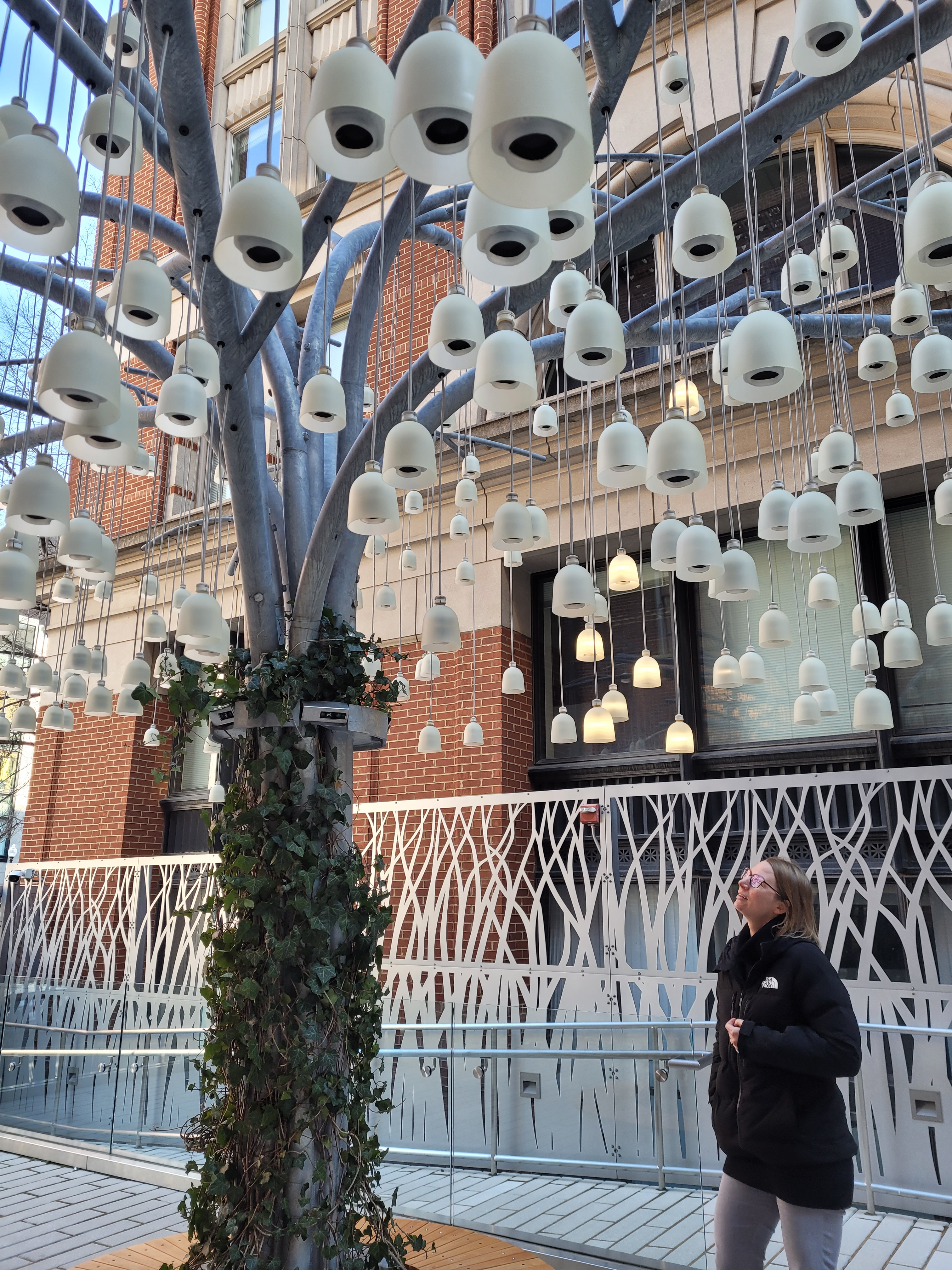 Before you even start the exhibits, there are clues as to what this place might be like, but I still wasn’t sure if there would be actual substance. In the courtyard outside is a statue of a willow tree. There are little white cups dangling from the branches, and when you stand under them, they light up and a little speaker inside plays voices. I couldn’t understand what anyone was saying (I’m guessing foreign languages?), but it was kinda cool to listen to the voices change as you walk around. That was neat and fun, but still left me wondering whether the museum inside would be substantive, or just gimmicks like this.