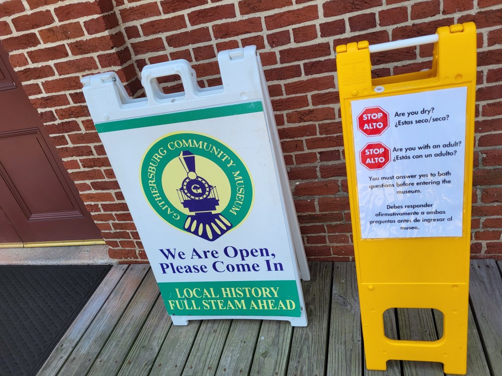 First up, a few more notes on the location. The museum is located on what is apparently called the Gaithersburg History Park. In addition to the working old-timey train station, there is also a locomotive and a caboose on display. Beyond that there’s a splash park, which surprisingly only had 2 kids playing in it on this crazy freaking hot afternoon. One thing that quickly became apparent is that this museum is probably aimed mostly at kids. The signage outside warns splash park kids to not come inside if they’re soaked. I didn’t have them open up the caboose for me (which, according to the signage, I could have requested), but I did nab a quick glance through the window and noticed it was decked out as a toddler playroom, not as anything historic. And inside, well… we’ll get to the inside.